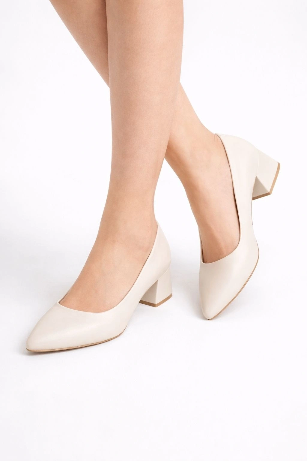 • Desniy Bej Cilt Topuklu Ayakkabı