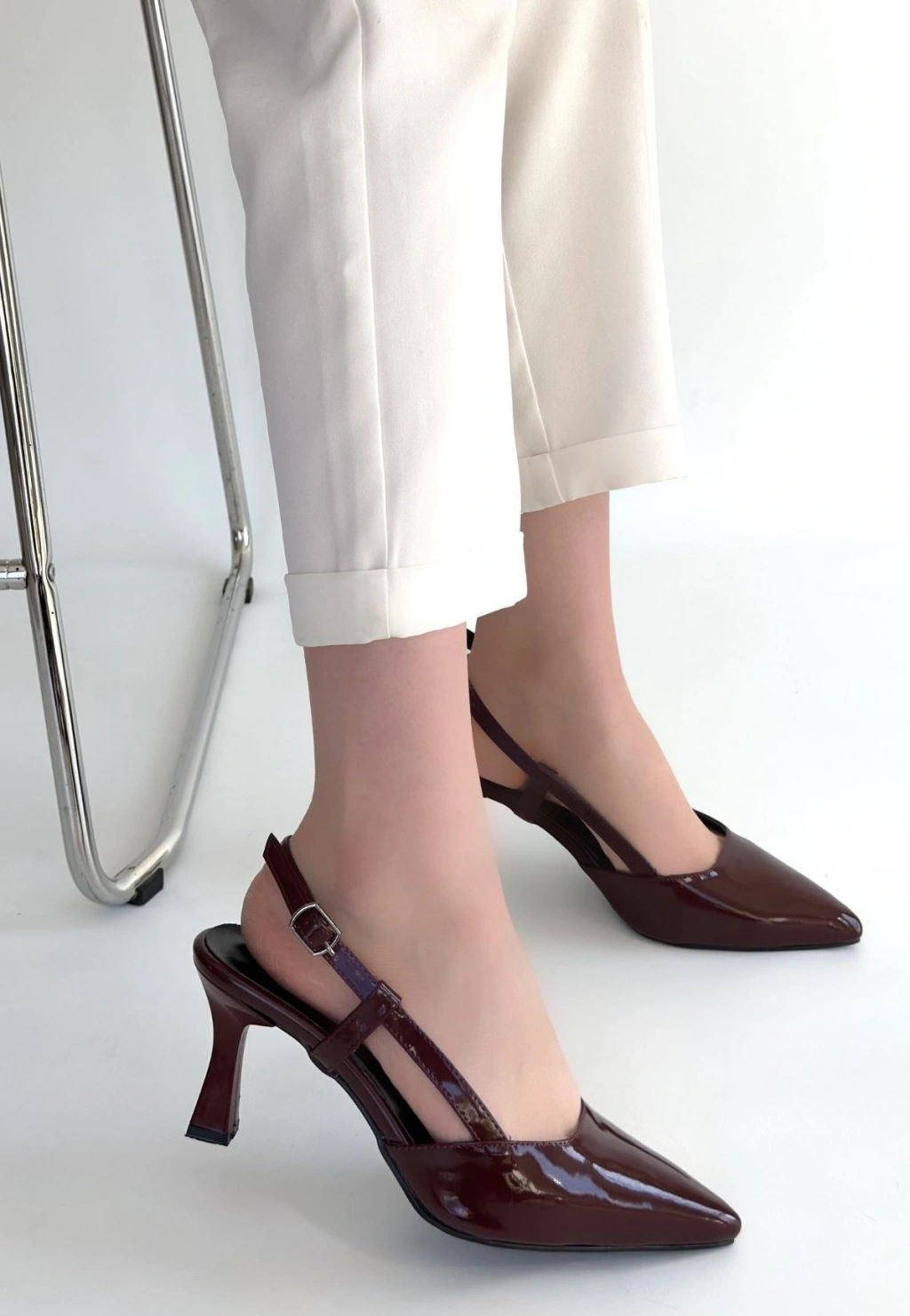 • Hoost Bordo Rugan Topuklu Ayakkabı
