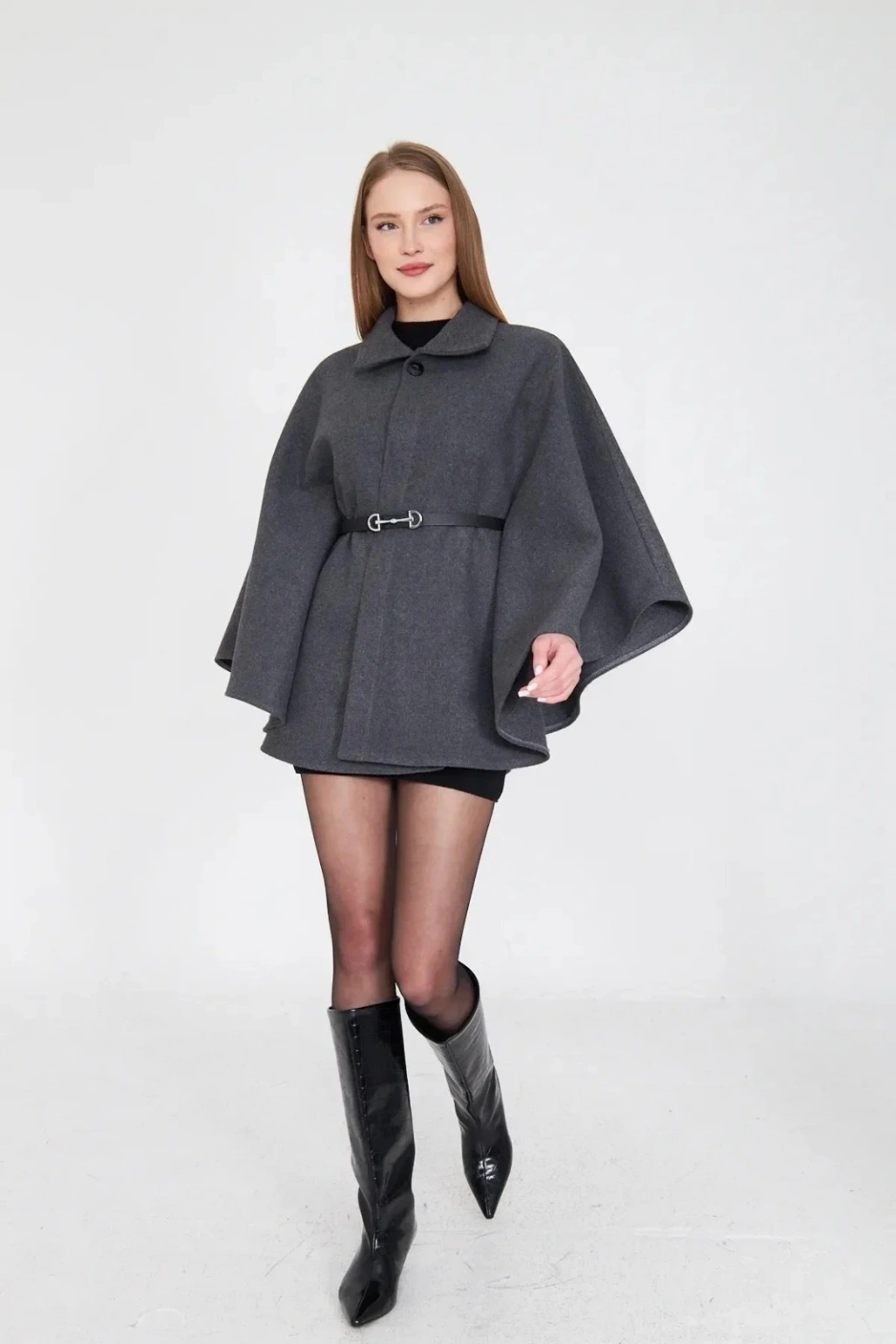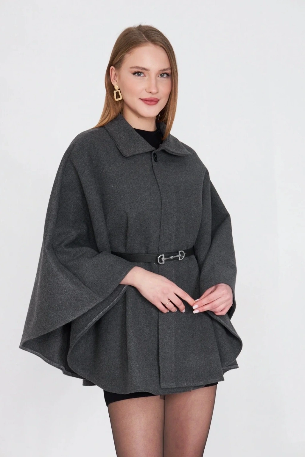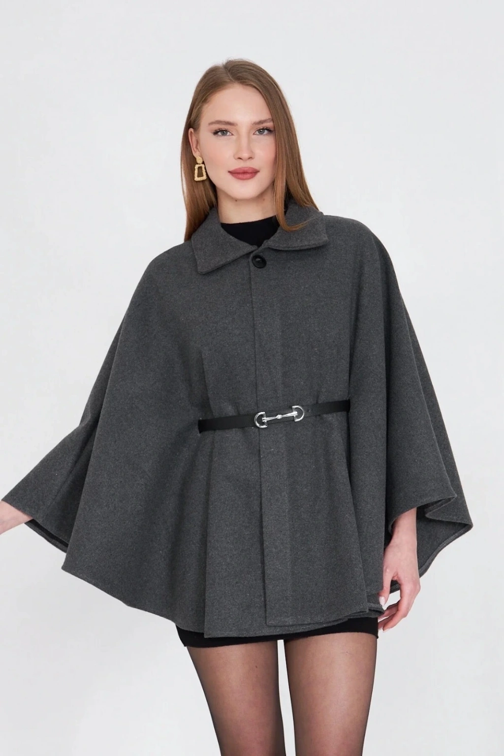 • Kemerli kaşe panço antrasit pt